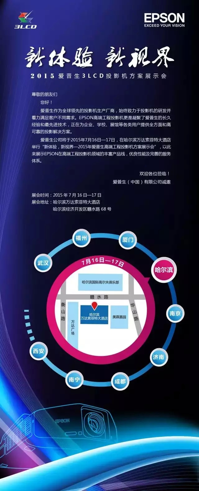 2015愛普生3LCD投影機(jī)方案展示會廈門、福州站不僅為大家?guī)碜钕冗M(jìn)的投影技術(shù),更將提供切實(shí)用戶實(shí)際需求的解決方案,滿足各類行業(yè)用戶的投影需求,解決用戶的各種疑難雜題,改變我們的生活和工作。除廈門、福州站外,2015愛普生3LCD投影機(jī)方案展示會還將在7月16日、17日在哈爾濱舉辦,讓我們共同期待,同時歡迎業(yè)內(nèi)人士的蒞臨參觀!