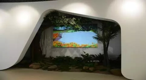 生態(tài)環(huán)境展區(qū)裝修構(gòu)造獨(dú)特,配以樹木、砂石模擬自然環(huán)境以展現(xiàn)有天然氧吧之稱的南寧風(fēng)光。鑒于展區(qū)前方有裝飾物的特性,由1臺(tái)愛普生7000流明雙燈投影機(jī)以背投方式完成投影,搭配短焦鏡頭,投影機(jī)鏡頭距離幕布3.68米,配合雙燈投影機(jī)的WXGA(1280*800)分辨率和5000:1的高對(duì)比度,色彩斑斕的投影畫面完美展現(xiàn)了綠城南寧的勃然生機(jī)。