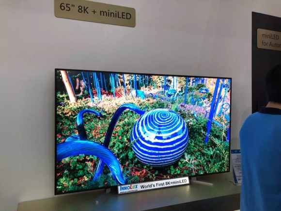 群創(chuàng)這次展示的65英寸AM Mini LED 8K顯示器,具備高色飽和度(>94%BT2020 cover ratio,125%NTSC)、高動態(tài)對比(1,000,000:1)、廣視角低色偏、藍(lán)光護(hù)眼無色偏等四大特點(diǎn),預(yù)計將于2019年第二季量產(chǎn)上市。同時也將展示65英寸8K Mega-Zone,強(qiáng)調(diào)解析度是同尺寸OLED4倍,在相同功耗下,亮度為4K OLED電視的兩倍以上。