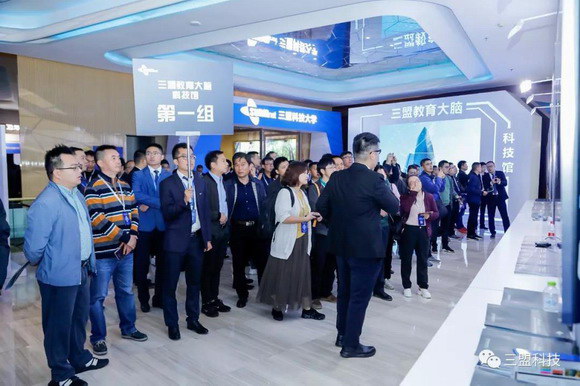 特別關(guān)注,會(huì)議現(xiàn)場(chǎng)特設(shè)2500+㎡三盟教育大腦科技館,圍繞智慧校園創(chuàng)新產(chǎn)品展示新科技及體驗(yàn)區(qū)。整個(gè)展區(qū)共分為,技術(shù)展示區(qū)及產(chǎn)品體驗(yàn)區(qū)。技術(shù)展示區(qū)包含,大數(shù)據(jù)、人工智能、AR/VR、物聯(lián)網(wǎng)、人臉識(shí)別5大技術(shù)。產(chǎn)品體驗(yàn)區(qū)分為:高教展區(qū)、普教展區(qū)、幼教展區(qū)。其中,高教展區(qū)又分為:AIoF智慧校園“一臉通”解決方案體驗(yàn)區(qū)、平安校園體驗(yàn)區(qū)、智慧食堂體驗(yàn)區(qū)、智慧圖書(shū)館體驗(yàn)區(qū)、智慧宿舍體驗(yàn)區(qū)、智慧校園人工智能指揮中心、感知空間指揮調(diào)度中心、數(shù)據(jù)空間治理交換中心、智能空間綜合決策中心、AIoD智能數(shù)據(jù)“一表通”平臺(tái)、AIoD高職質(zhì)量診斷與改進(jìn)管理決策平臺(tái)、AIoD學(xué)科發(fā)展規(guī)劃輔助決策平臺(tái)、AIoD學(xué)生安全與成長(zhǎng)輔助決策平臺(tái)、AIoD-BDT大數(shù)據(jù)實(shí)踐教學(xué)平臺(tái)體驗(yàn)區(qū)、AIoD精準(zhǔn)就業(yè)與質(zhì)量提升服務(wù)平臺(tái)、三盟智校物聯(lián)網(wǎng)創(chuàng)新體驗(yàn)中心(辦公室、財(cái)務(wù)室、廚房、停車(chē)場(chǎng))、三盟科技大學(xué)智慧教室體驗(yàn)區(qū)、AIoD智能交互式教學(xué)平臺(tái)、人工智能控制中心、管理體驗(yàn)區(qū)(教務(wù)處)、AIoD教學(xué)大數(shù)據(jù)智能分析輔助決策平臺(tái)。普教展示區(qū)有:普教一臉通智慧校園管理平臺(tái)、普教AR/VR智慧課堂體驗(yàn)區(qū)、普教大數(shù)據(jù)平臺(tái)、普教智慧教室展示區(qū)、普教AR/VR技術(shù)展示區(qū);幼教展示區(qū):三盟科技大學(xué)附屬幼兒園AR/VR智慧教學(xué)體驗(yàn)區(qū)等。
