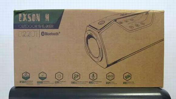 EXSON B2201按官方的說明,是定位于戶外運(yùn)動(dòng)和休閑的2.0CH藍(lán)牙音箱,難怪產(chǎn)品外包裝用了這種明顯帶有戶外屬性的暗綠色。