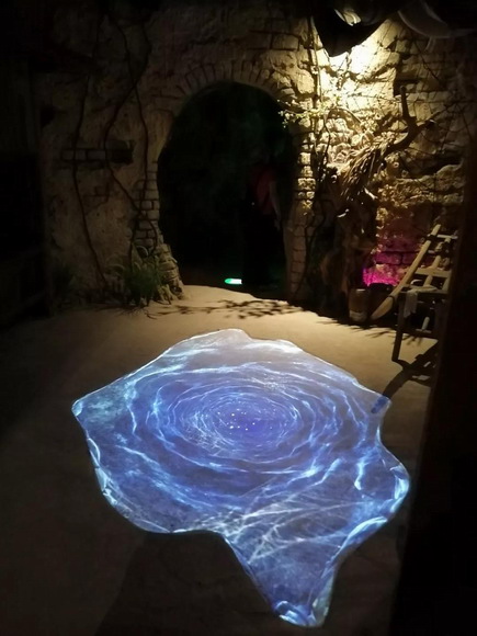 構(gòu)思巧妙的地面互動投影,當(dāng)你上一秒還沉浸在大話世界的情懷中時,下一秒地面就有骷髏突然冒出,化身一個大話西游主題的“鬼屋”。在不斷遞進的情緒感受中,把對電影經(jīng)典IP的浸入式體驗推至最高潮。