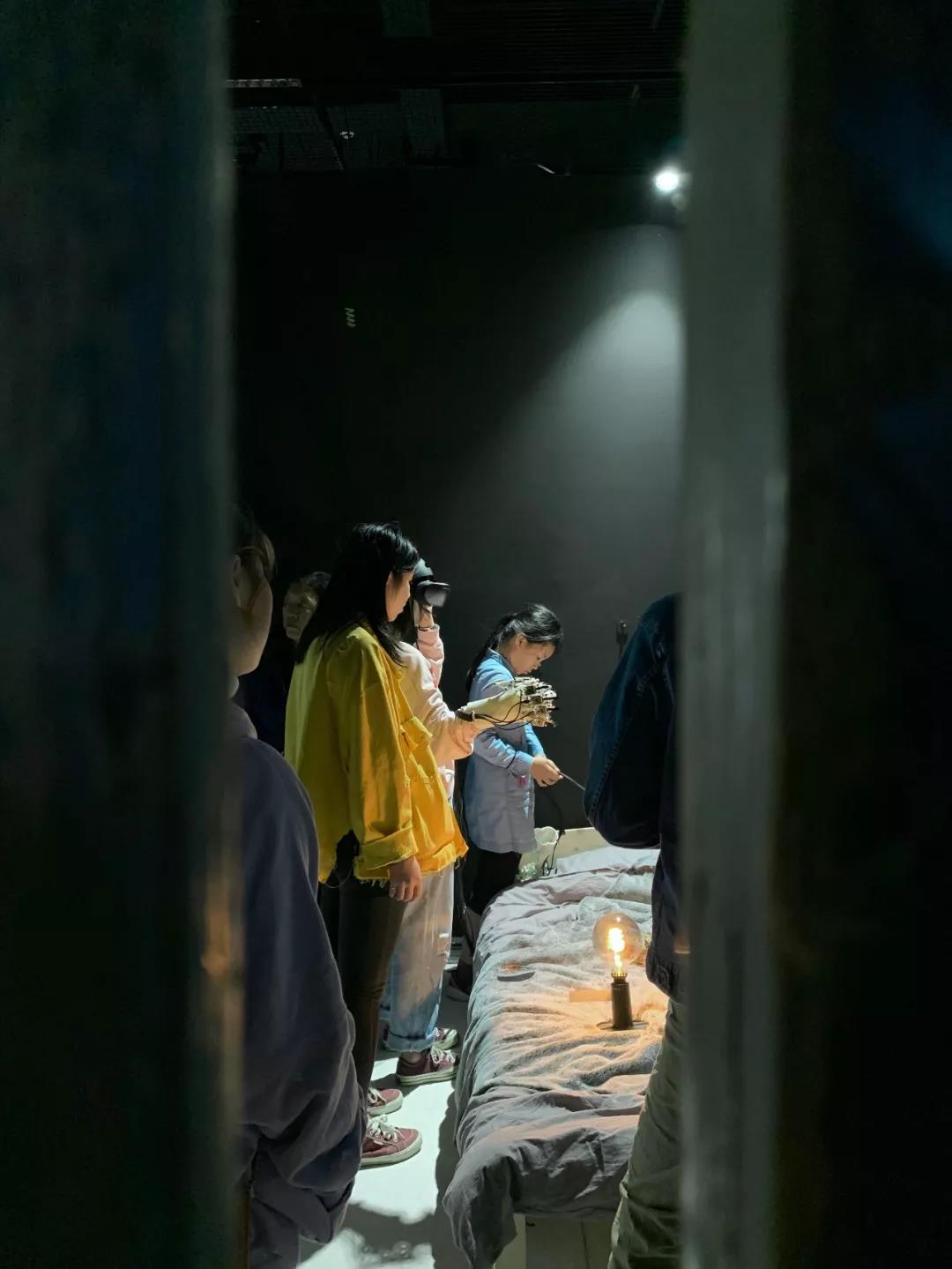 不算空蕩的房間,黑漆漆的墻,還有復(fù)古的窗,上面粘滿一顆顆凸起的玻璃,透射著同一個(gè)畫面,有人、有眼,像置身在另外一個(gè)世界,有著迷幻、空洞卻充滿故事的感覺。
