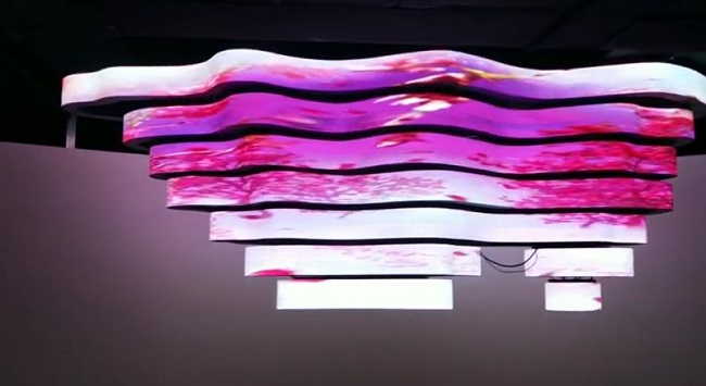 深圳led顯示屏廠家大元智能科技打造的某展廳創(chuàng)意led顯示屏案例,采用了P2.5型號(hào),做了波浪弧形和圓柱屏的結(jié)構(gòu)設(shè)計(jì),異樣的造型配合展廳展示,讓原本具有畫面的氛圍更進(jìn)一步吸引人,顯示更加唯美。
