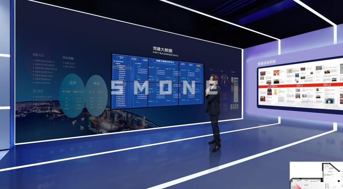 進(jìn)入工業(yè)富聯(lián)黨群服務(wù)中心展廳,映入眼簾的是一道以黨建100周年標(biāo)志為背景的LED大屏,屏幕可用來(lái)迎賓,也可以針對(duì)不同受眾 播放不同的畫面渲染不同的展廳氛圍,奠定展廳的整體基調(diào);繼續(xù)向前參觀,LED屏幕向左右緩緩打開 地面上投影的代表黨的發(fā)展歷程中重要?dú)v史事件年份如同跑馬燈一節(jié)節(jié)的亮起,為參觀帶來(lái)強(qiáng)烈的儀式感