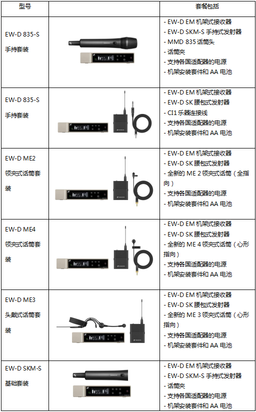 Evolution Wireless Digital現(xiàn)已發(fā)售,提供手持式、樂(lè)器、領(lǐng)夾式、頭戴式話筒、組合和基礎(chǔ)套裝(參見(jiàn)附錄)
