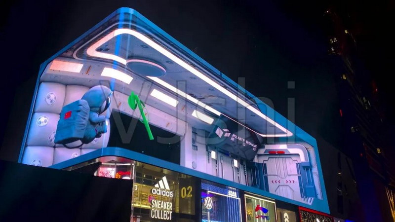 這有別于以往平面視頻的制作流程,更多要考慮曲面、尤其是90°曲面在特定視角(如斜側(cè)45°+仰視)所展現(xiàn)出來的三維透視感。