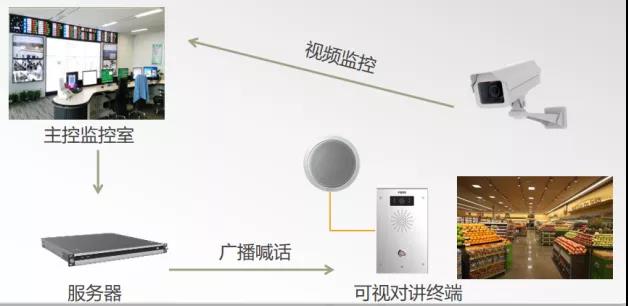 可利用管理機或系統(tǒng)軟件進行實時監(jiān)聽、監(jiān)視無人化商店各個連鎖店的現(xiàn)場情況,當(dāng)發(fā)現(xiàn)惡意破壞情況,可通過管理機主動發(fā)起廣播喊話,威懾不法分子。如發(fā)生緊急情況,顧客可隨時通過店內(nèi)對講系統(tǒng)緊急呼叫管理中心,獲得幫助。