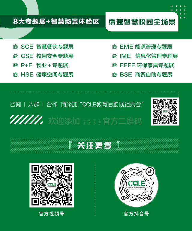 CCLE中國教育后勤展覽會,簡稱“CCLE教育后勤展”。展會聚焦校園后勤管理服務(wù),通過展示校園安全、智慧餐飲、能源管理、環(huán)保家具、校園信息化等多個方面展品,以及組織開展全國學(xué)校教育后勤領(lǐng)域論壇會議等多方面服務(wù),打造集展覽展示、學(xué)習(xí)交流、供需鏈接、貿(mào)易合作等功能于一體的校園綜合服務(wù)平臺,引領(lǐng)教育后勤管理變革,助力校園管理服務(wù)升級,提升校園管理服務(wù)保障能力,助推新時代教育后勤現(xiàn)代化建設(shè)。