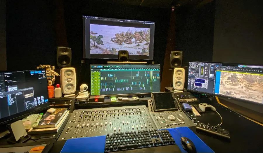 “金陵圖數(shù)字藝術(shù)展”意圖營(yíng)造一個(gè)身臨其境的金陵盛世,給人以全景式、多感官、多維度的震撼感受,在“人物入畫(huà),實(shí)時(shí)跟隨”成為可能后,還需在展廳中營(yíng)造沉浸式聲場(chǎng)空間。