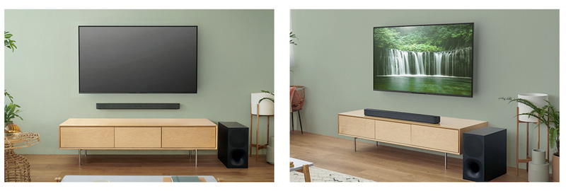 HT-S400經(jīng)典的黑色長條狀音箱可通過與電視壁掛或擺放至電視前方的兩種方式靈活安裝,和諧融入家居環(huán)境之中。
