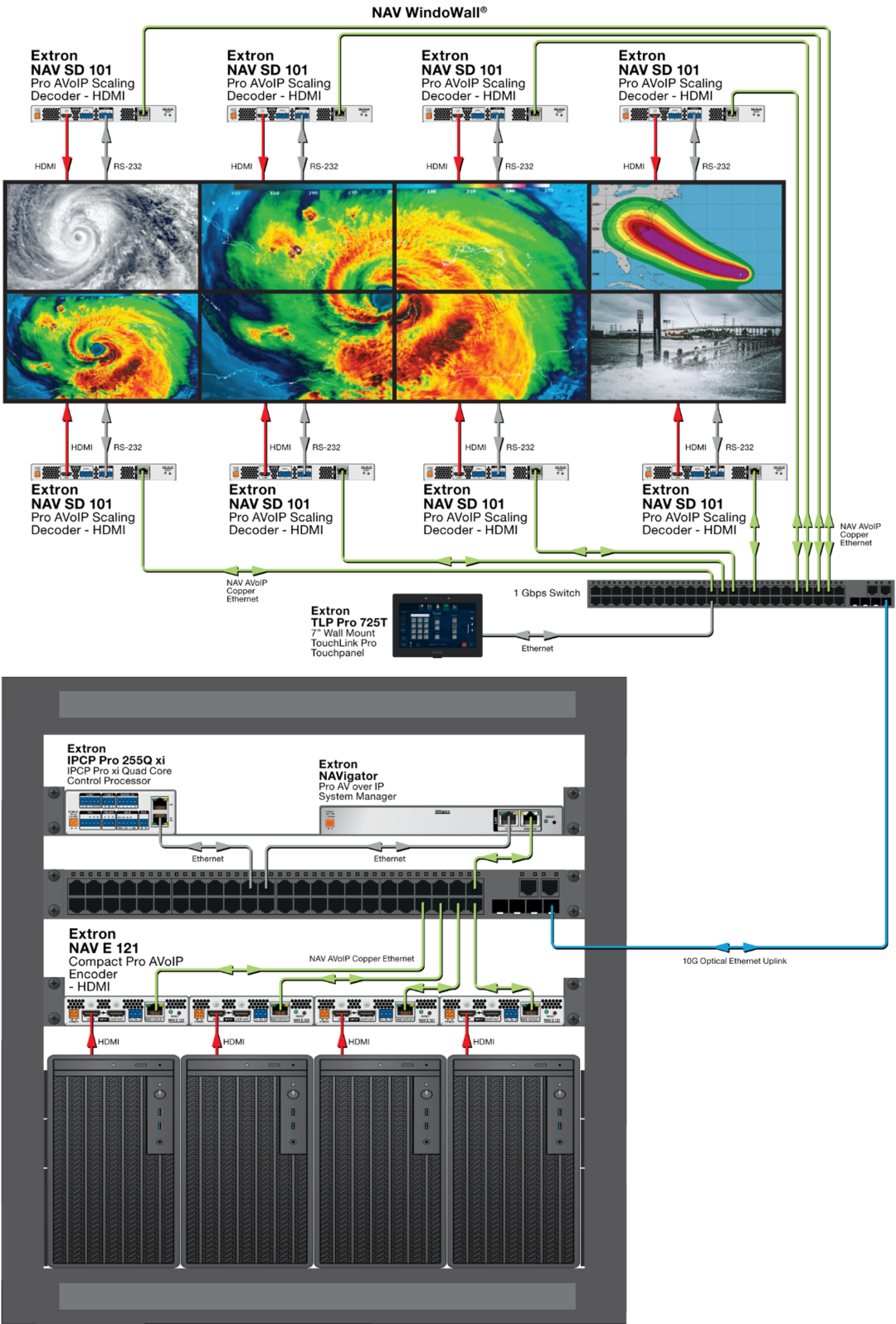 它支持用于本地顯示或預(yù)監(jiān)的HDMI 2.0 環(huán)通,和 RS-232 控制端口, 還支持嵌入的數(shù)字HDMI音頻以及基于IP架構(gòu)的AES67音頻,能夠與Extron廣闊的音頻DSP產(chǎn)品或其它具有IP功能的音頻組件集成。NAV系統(tǒng)可部署為基于IP網(wǎng)絡(luò)的高性能視音頻矩陣,將IP系統(tǒng)的靈活性與Extron常規(guī)矩陣切換器的易于集成特性相結(jié)合。為滿足專業(yè)視音頻應(yīng)用環(huán)境的需求,可高度擴(kuò)展且功能強(qiáng)大的NAV平臺(tái)能實(shí)現(xiàn)數(shù)千個(gè)端點(diǎn)的視音頻信號(hào)安全部署。