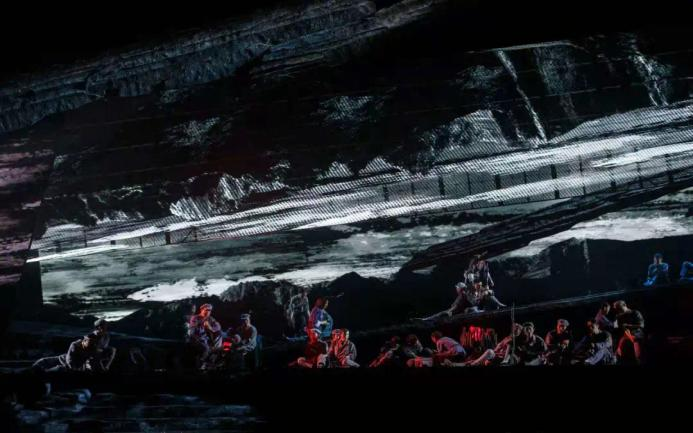 影像可以為舞臺演出營造豐富的視覺效果,同時(shí)更值得關(guān)注的是,它的存在使布景自身具有了四維屬性,從靜態(tài)圖片轉(zhuǎn)向動(dòng)態(tài)畫面,盡管沒有演員的配合,影像自身也能具備傳遞戲劇情節(jié),釋放情感信號的表現(xiàn)功能。在時(shí)間維度上,影像通過連續(xù)的幀數(shù)變動(dòng)使戲劇的時(shí)空維度得到拓展,布景自身擁有推進(jìn)戲劇情節(jié)發(fā)展的作用。