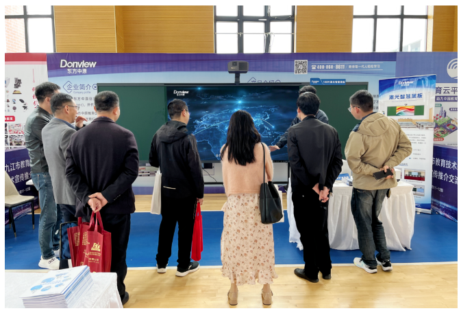 東方中原攜100吋激光智慧黑板、數(shù)字紅外無線教學(xué)擴聲系統(tǒng)、教育投影機等教育裝備產(chǎn)品亮相活動現(xiàn)場,吸引了眾多與會者的目光。