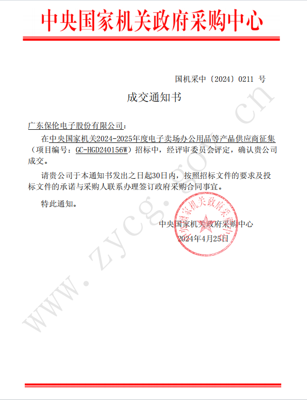 4月25日,中央政府采購網(wǎng)發(fā)布“中央國家機(jī)關(guān)2024-2025年度電子賣場辦公用品等產(chǎn)品供應(yīng)商征集中標(biāo)公告”。itc保倫股份憑借優(yōu)異的產(chǎn)品品質(zhì)、過硬的技術(shù)實力和深厚的行業(yè)經(jīng)驗,在眾多廠商中脫穎而出,成功中標(biāo)入圍。