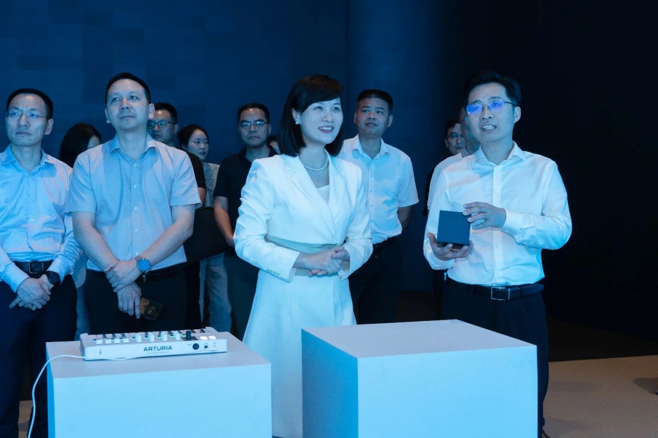 (調(diào)研組一行體驗(yàn)音視頻體驗(yàn)中心,感受傳統(tǒng)文化與現(xiàn)代科技交相輝映,湖湘山水與數(shù)字藝術(shù)融合共生)