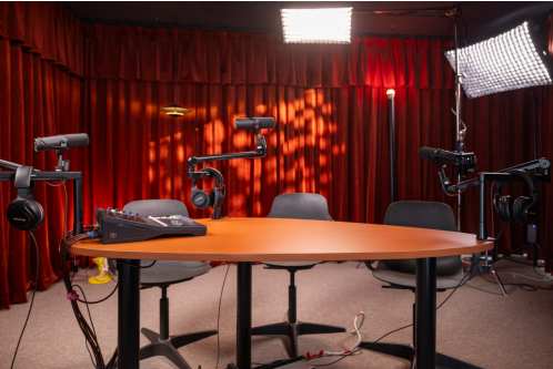 錄播室視覺主體以深棕色為主