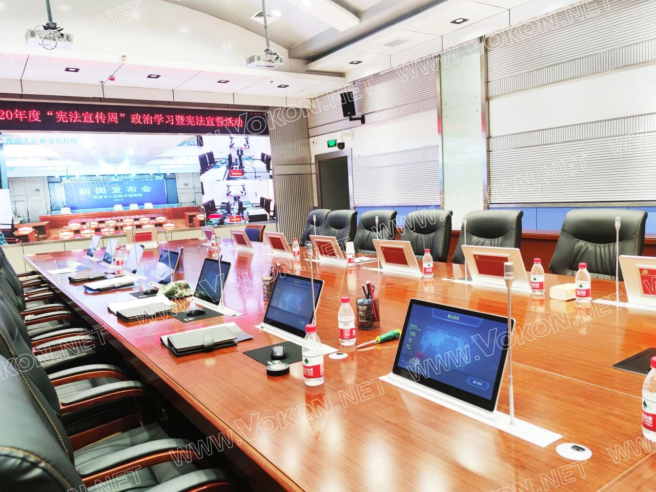 武裝部會(huì)議室需要升級(jí)配套會(huì)議設(shè)備,部署VOKON數(shù)字會(huì)議+品質(zhì)擴(kuò)聲+遠(yuǎn)程視頻會(huì)議+中控系統(tǒng)等聲光電整體解決方案!設(shè)備操作簡(jiǎn)單,安全穩(wěn)定,管控簡(jiǎn)單,呈現(xiàn)效果獲得領(lǐng)導(dǎo)的一致好評(píng),滿足部隊(duì)日常會(huì)議的不同功能要求!