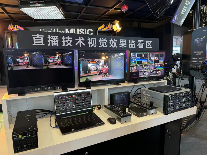 另外,還按照廣播電視的工作流程,在展臺上結(jié)合流程圖簡潔清晰地展示各種功能區(qū)域和模塊,包括現(xiàn)場制作區(qū)、主控調(diào)度區(qū)、遠程傳輸制作區(qū)等,進一步直觀展示索尼的全流程解決方案是如何落地。